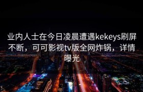 业内人士在今日凌晨遭遇kekeys刷屏不断,可可影视tv版全网炸锅,详情曝光